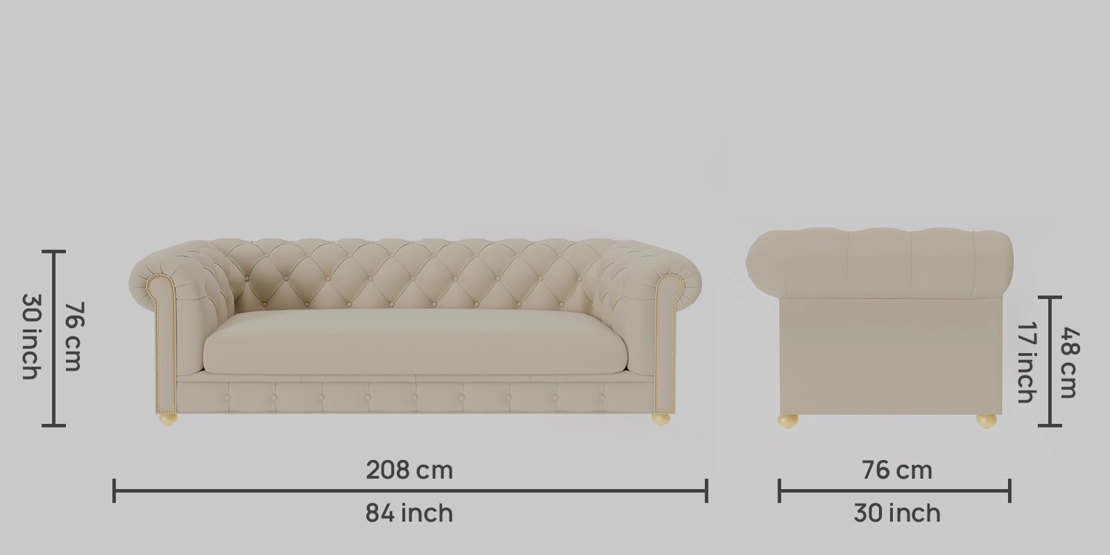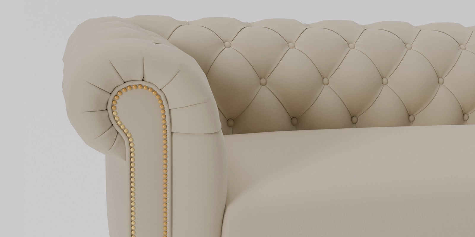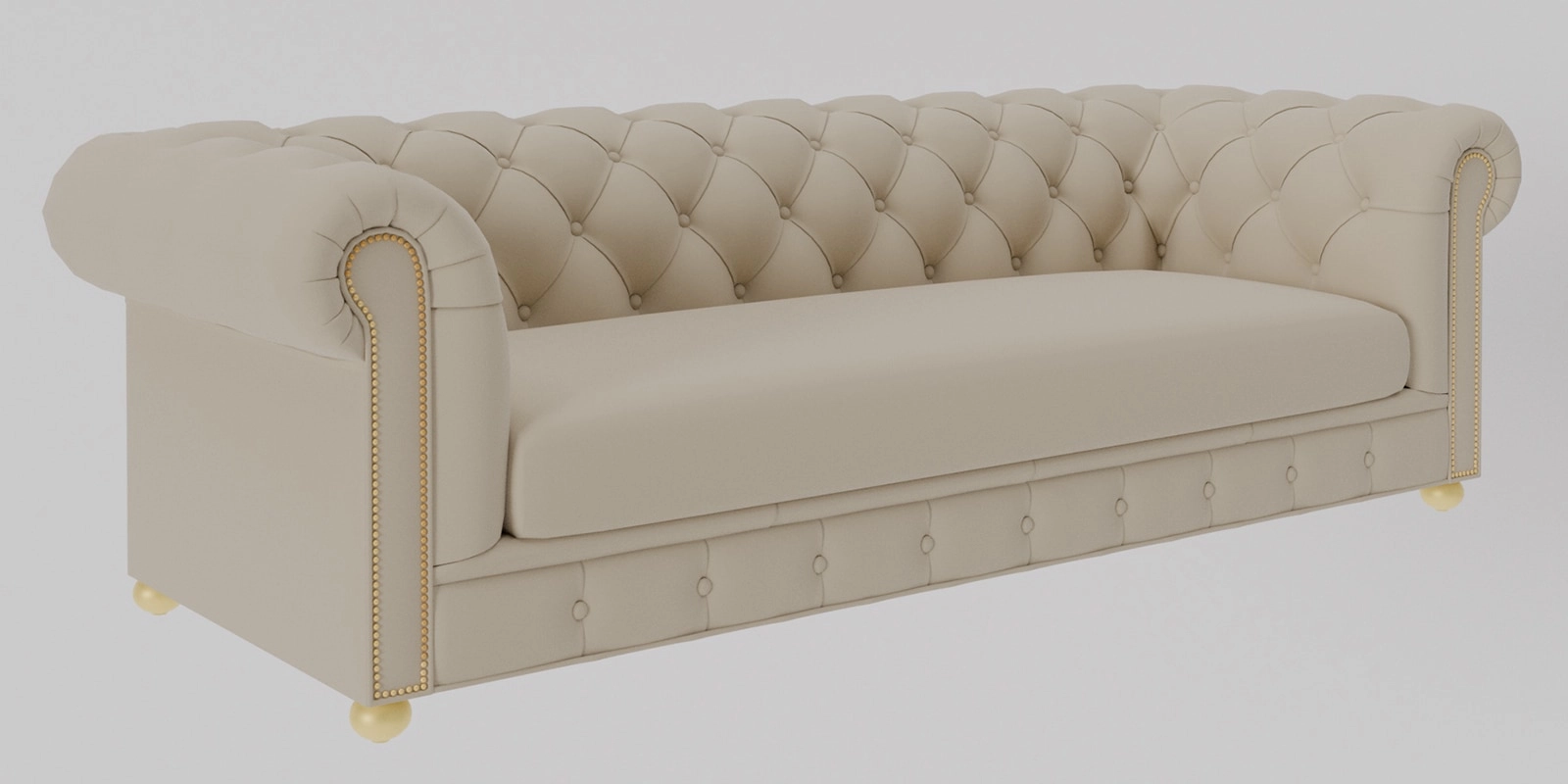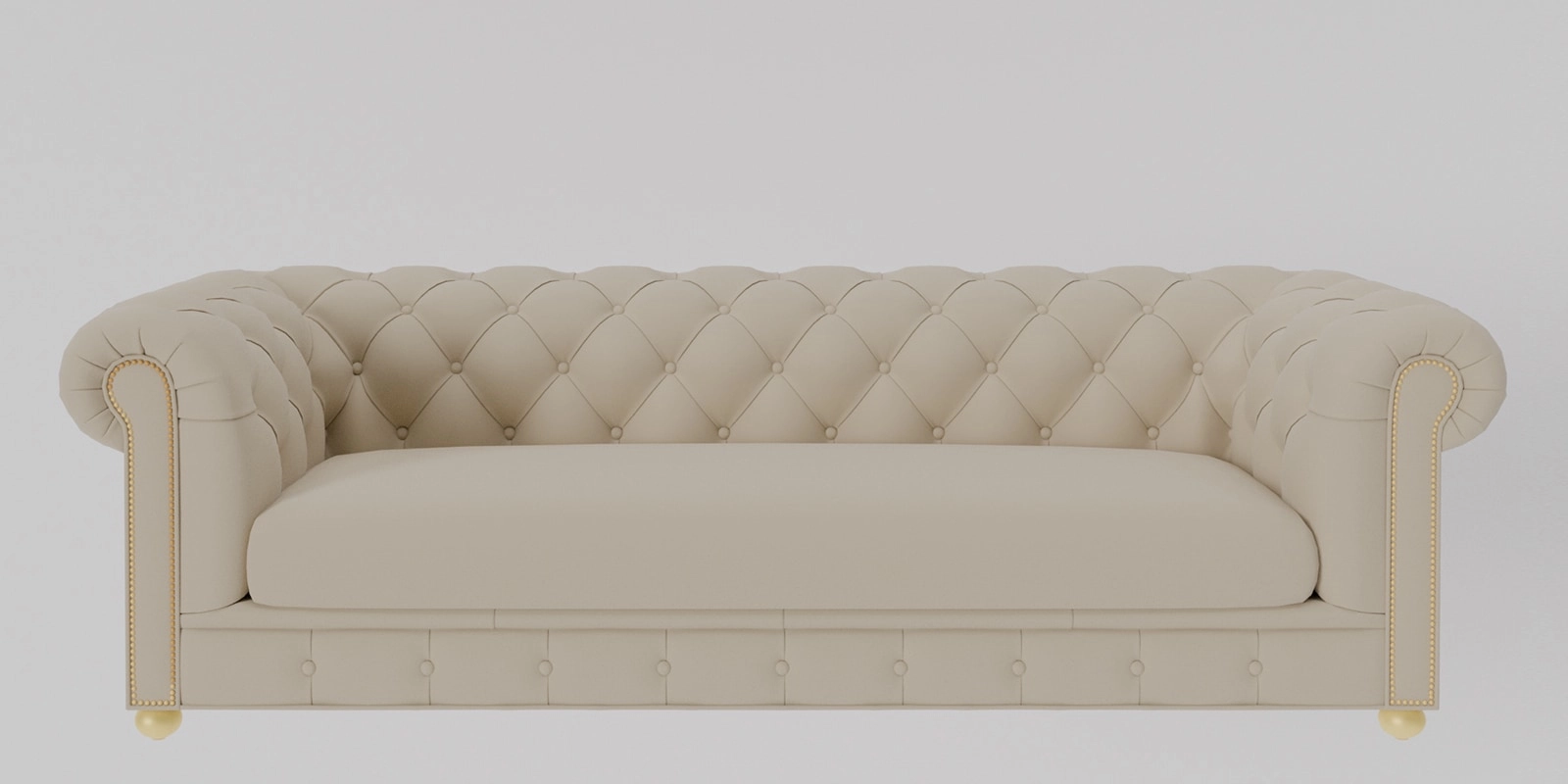 Crafted with attention to every detail, it features the iconic deep button tufting and elegant rolled arms that define the traditional Chesterfield style. The soft, cream-colored upholstery brings a fresh and airy feel to your space, making it easy to pair with any decor—from minimalist modern to classic vintage.