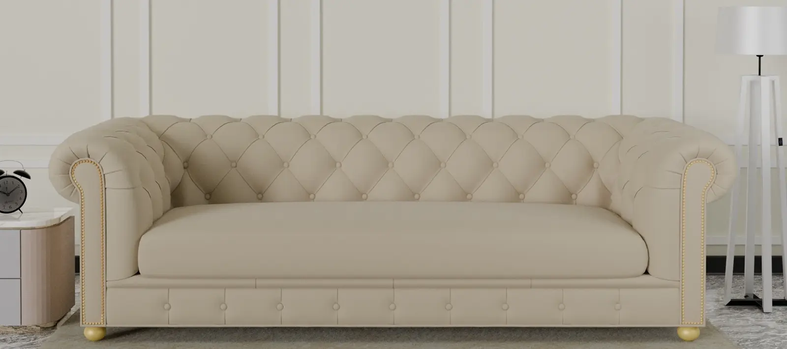 Classic Tufted Chesterfield 3-Seater Sofa in Premium Cream Fabric – Timeless Elegance for Your Living Room