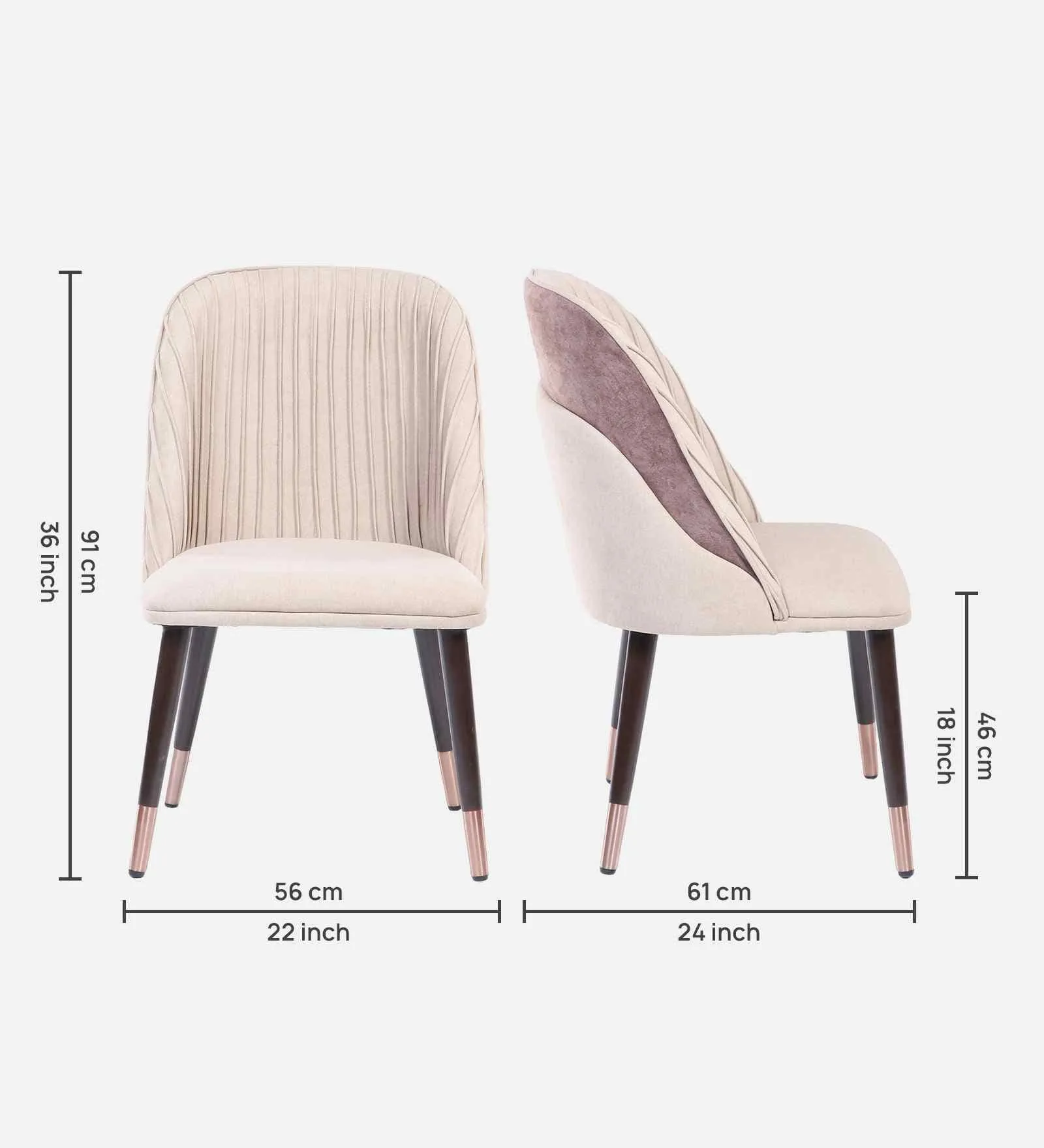 The chairs are the real highlight here. They come with soft, dual-tone upholstery—a mix of beige and dusty rose—with a stylish pleated back design. The legs of the chairs are finished with metallic gold tips, adding just the right amount of ‘bling’ to your space.