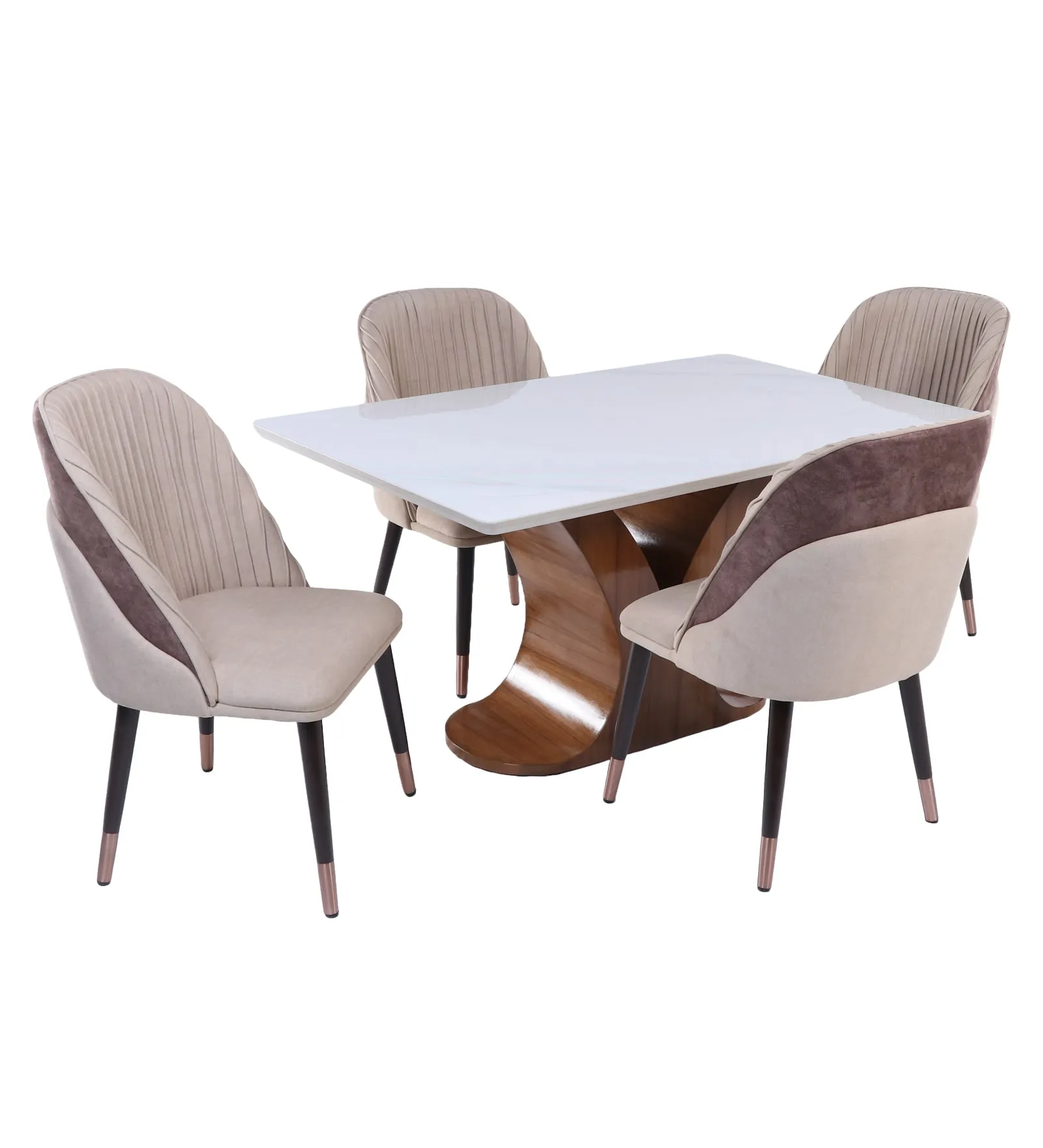 Elegant 4-Seater Dining Set with Marble-Finish Top