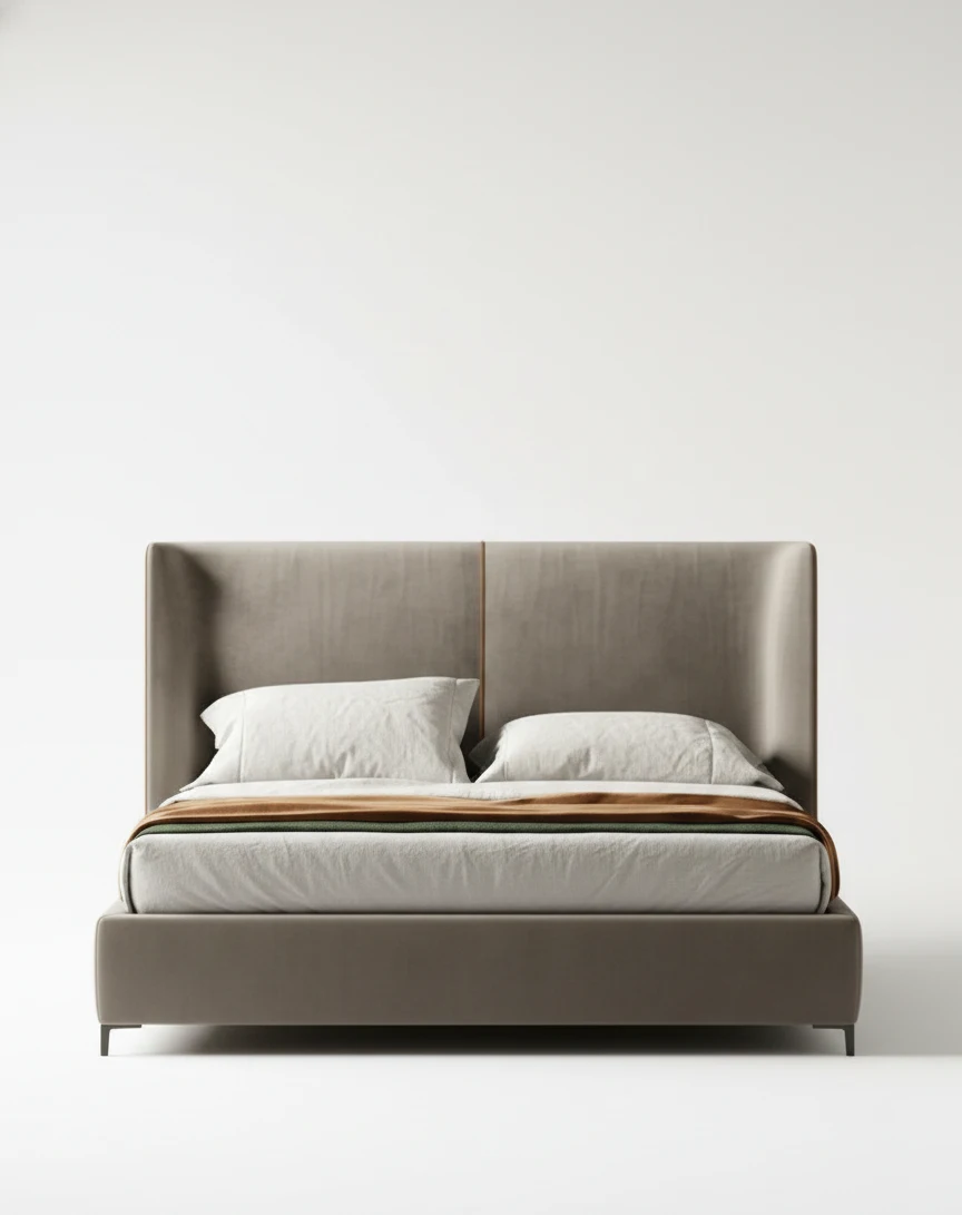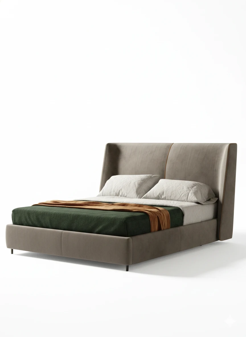 Transform your bedroom into a haven of comfort and style with this beautifully crafted bed design. Featuring a sleek and minimalist headboard, the clean lines and soothing neutral tones effortlessly complement any decor. The soft, inviting fabric creates a warm atmosphere, making it the perfect place to unwind after a long day.