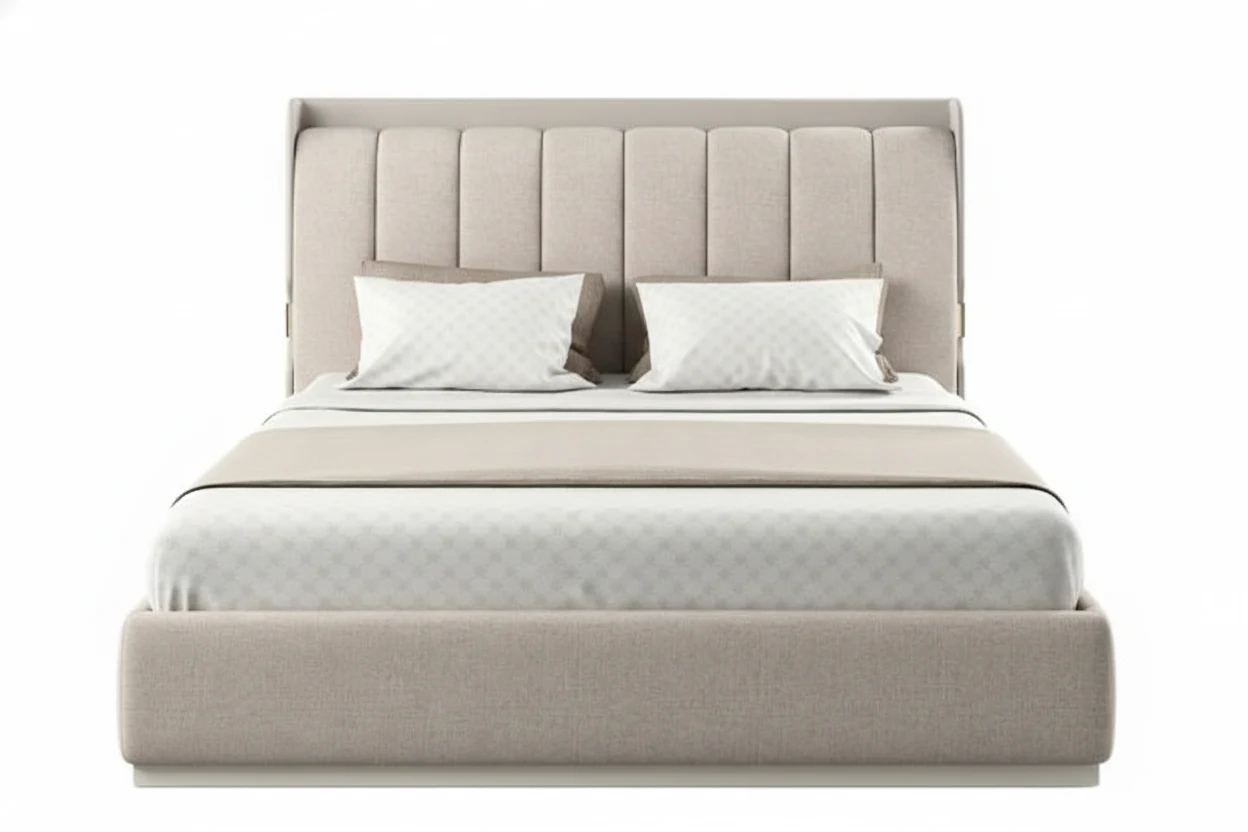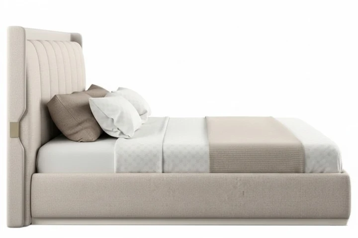 This bed is all about bringing that high-end, boutique hotel vibe right into your bedroom. It features a stunning vertical channel-tufted headboard that adds a sense of height and texture to the room. The subtle “wingback” sides wrap around slightly, creating a cozy, cocoon-like feel that’s perfect for those late-night reading sessions.