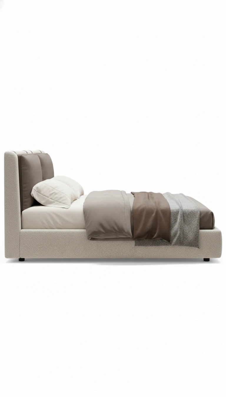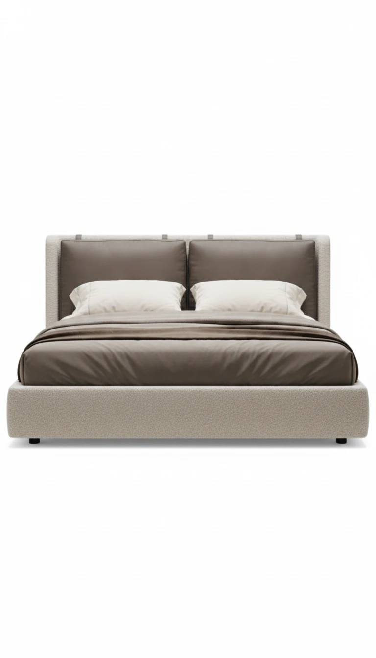 This sophisticated bed with a dual-tone cushioned headboard offers the perfect blend of comfort and contemporary style. The soft fabric contrasts beautifully with the bold, dark tones of the headboard, creating a stunning visual effect that enhances the elegance of any bedroom. Its modern design, combined with plush cushioning, ensures a relaxing sleep experience.