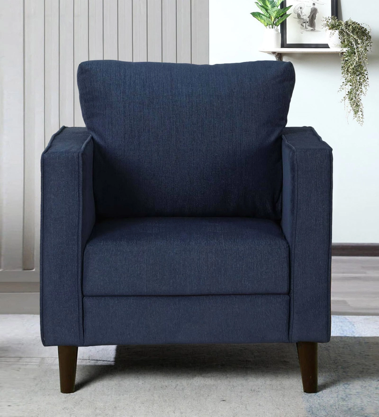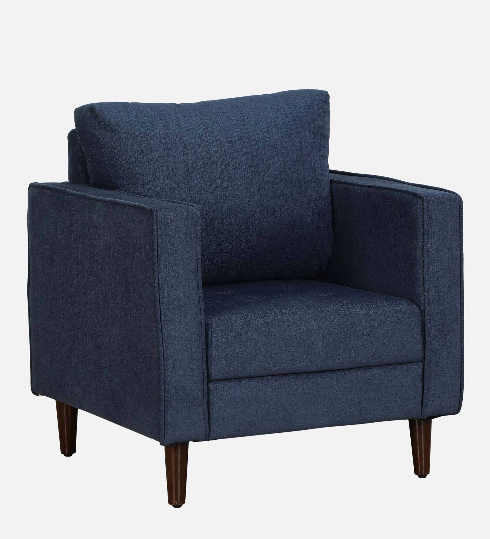 Transform any quiet corner into your new favorite sanctuary with this stunning Scandi-style 1-seater armchair. Draped in a refreshing Arctic Blue textured fabric, it features elegant diamond-pattern button tufting on the backrest, offering a sophisticated, high-end look that feels right at home in any modern Indian interior. Its clean, boxy silhouette is perfectly balanced by sleek, black-finish tapered wooden legs, providing a touch of mid-century charm that instantly levels up your living room or bedroom decor.