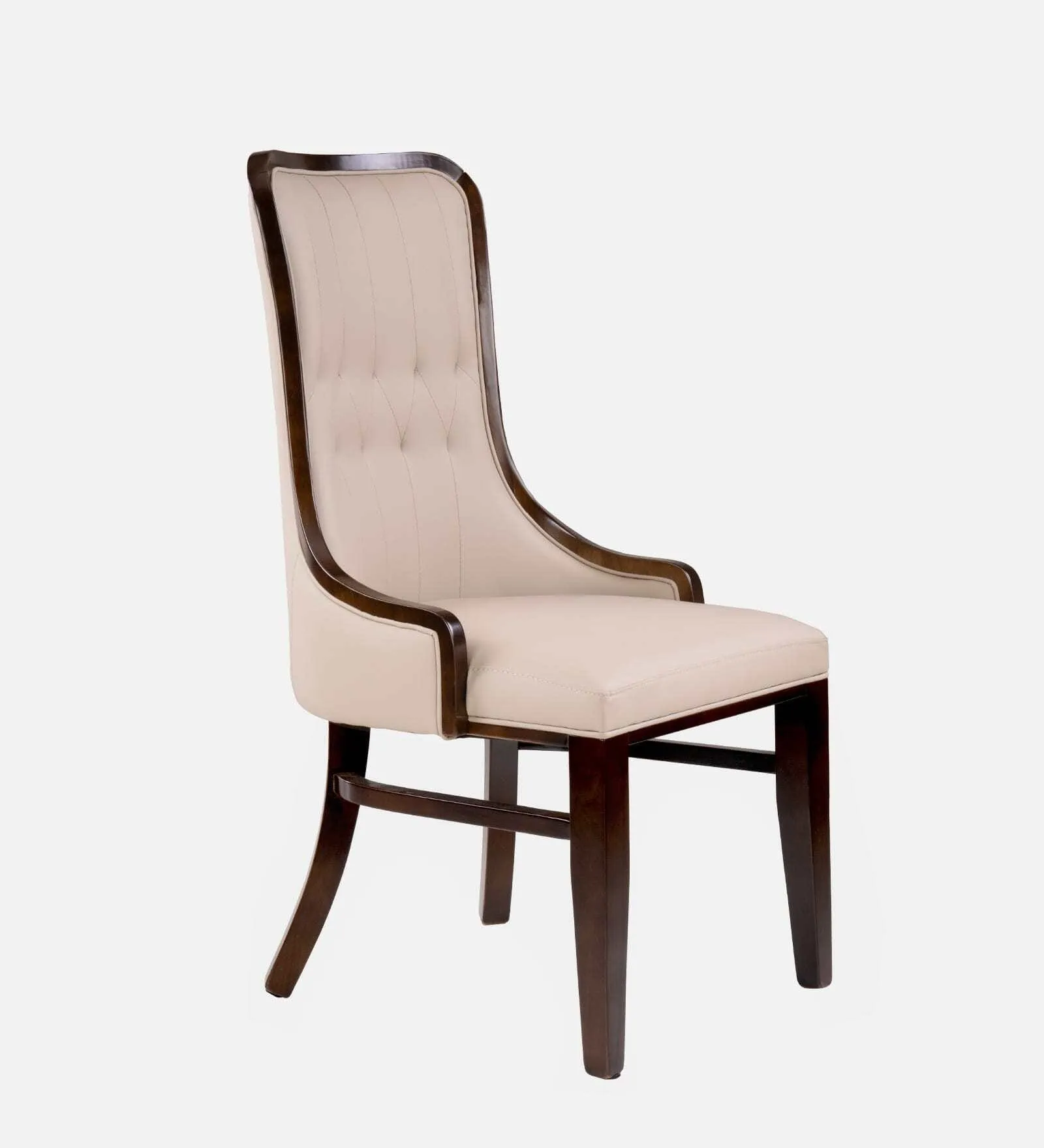 The star of the show is the heavy-duty table featuring a stunning grey marble-finish top and a unique architectural base that provides rock-solid stability. To match the grand scale of the table, the set includes eight premium high-back chairs. These chairs are upholstered in a sophisticated cream-toned fabric with elegant tufted detailing, framed by dark wood accents for a truly royal feel.