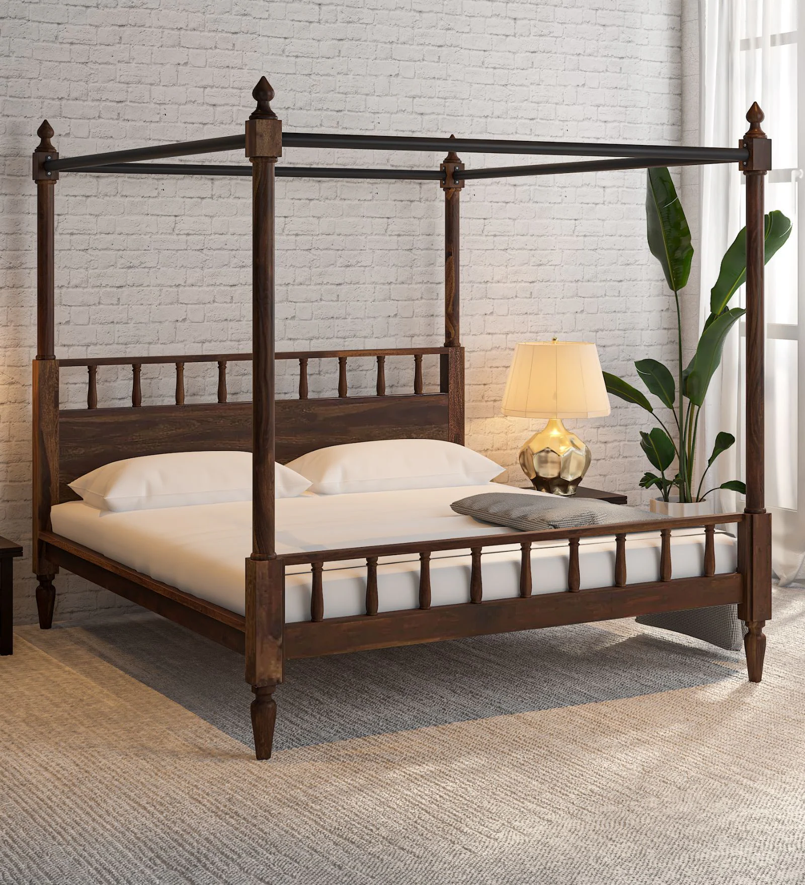 Bring home a piece of royalty with this stunning Four-Poster Bed. Crafted from premium Sheesham Wood, this bed is designed for those who love a bit of drama and elegance in their personal space. The high-quality wood ensures that the frame is incredibly sturdy and will last you a lifetime.