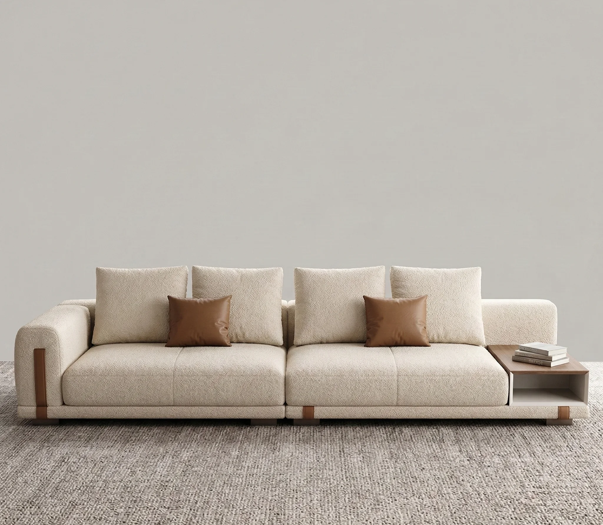 This is the ultimate “everything in one place” sofa. If you’re tired of searching for a spot to put your coffee or a lamp, this design solves it beautifully. We’ve combined a deep, plush lounge with a solid wood integrated side table, giving you a sleek, continuous look that replaces the need for extra bulky furniture.
