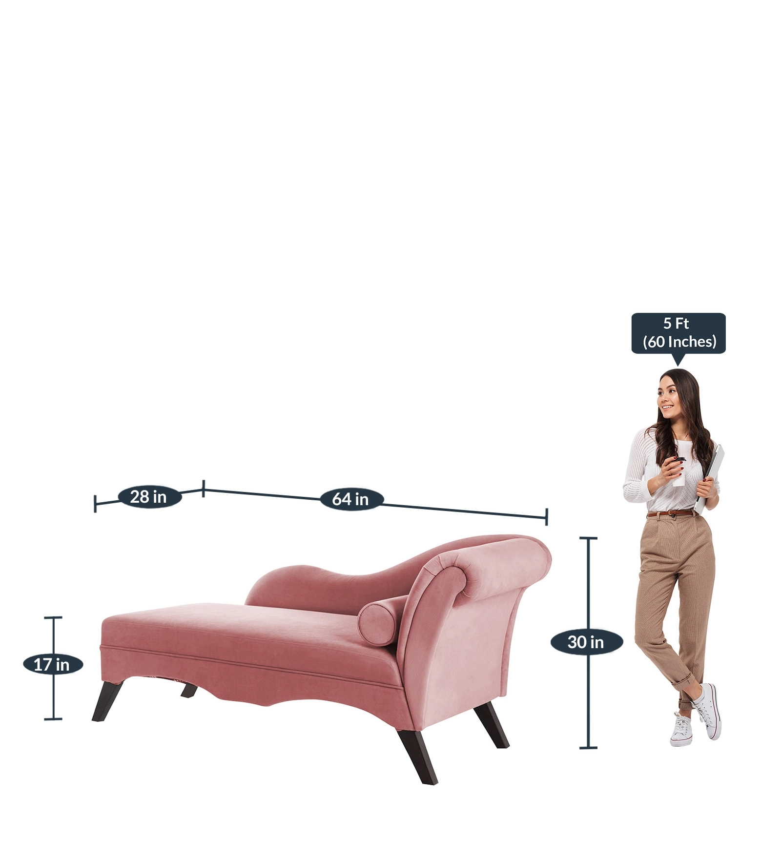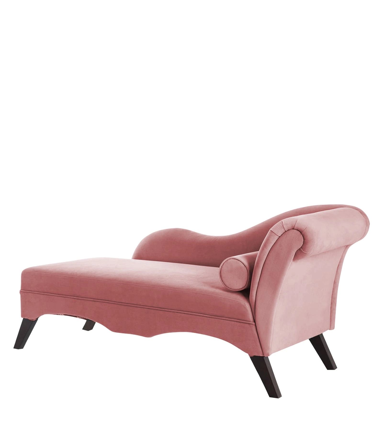 Modern Pink Velvet Chaise Lounger Sofas – Curved S-Shape Daybed with Bolster Pillow
