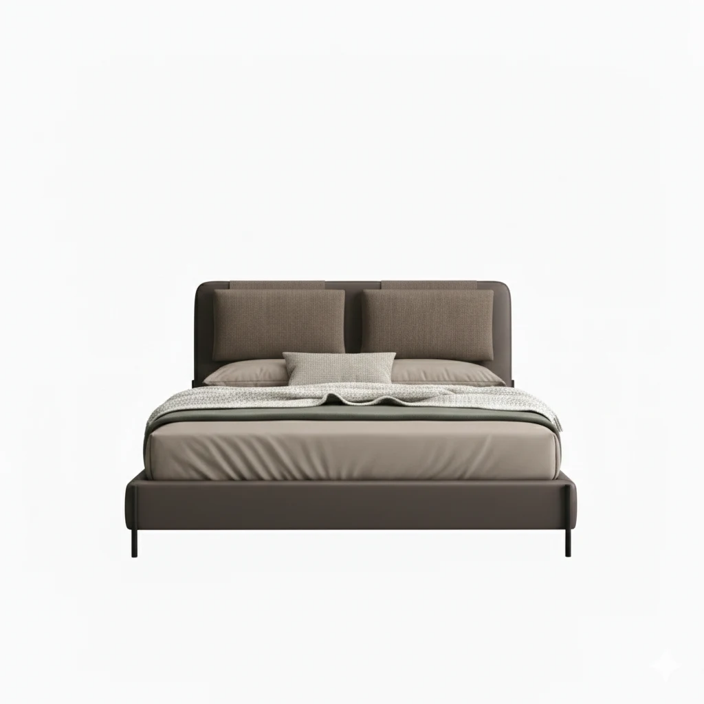 This bed is designed for those who love a clean, architectural look with a focus on premium materials. It features a stunning, tall headboard with subtle vertical stitching and a slight “wing” detail that adds depth and character to your room.