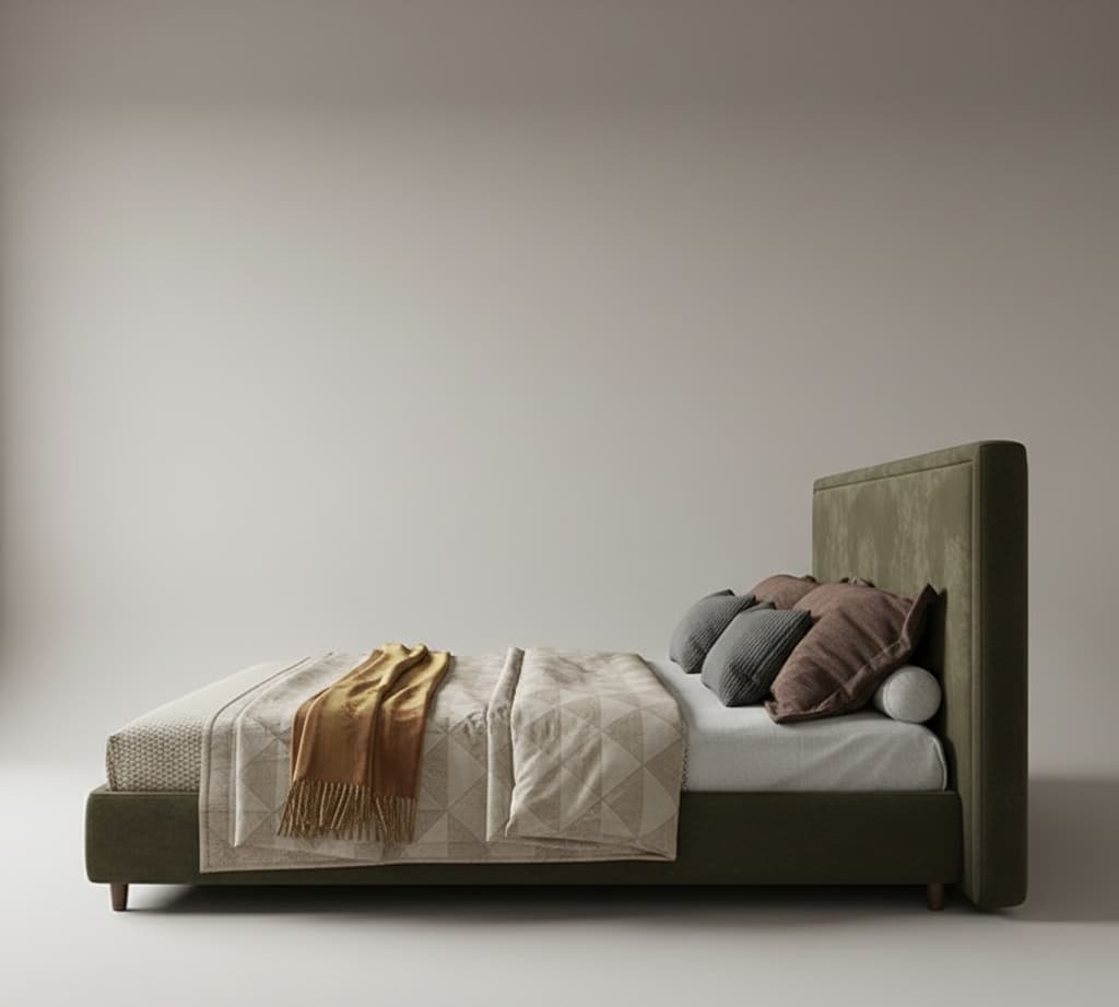 Olive Green Upholstered Bed with Modern Elegance