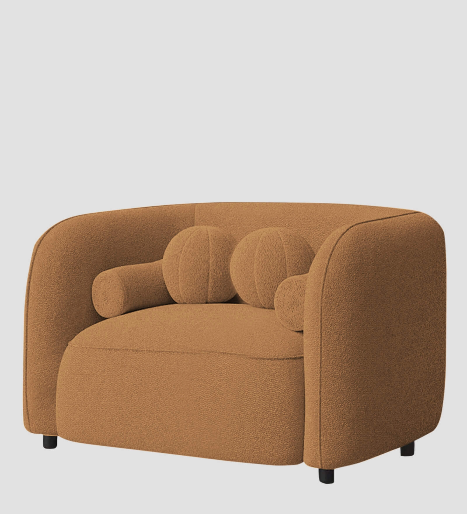 Plush Terracotta Bouclé Barrel Chair – Modern 1-Seater with Integrated Pillows