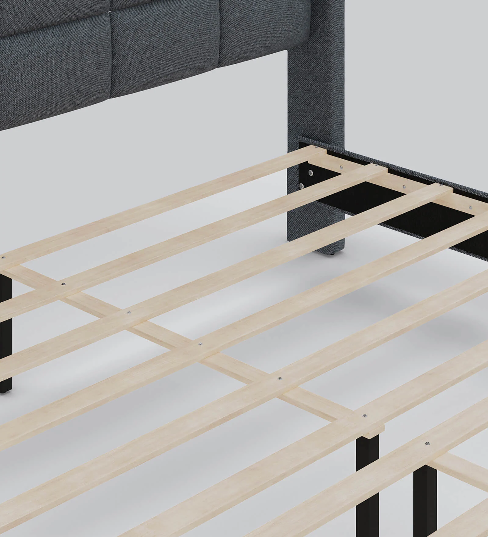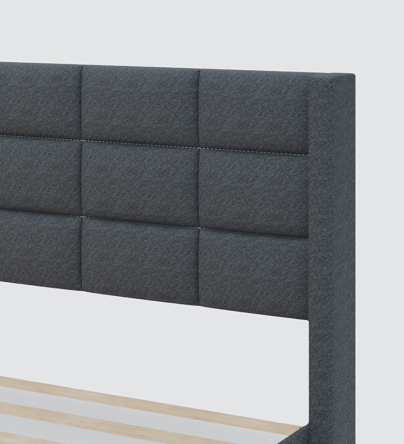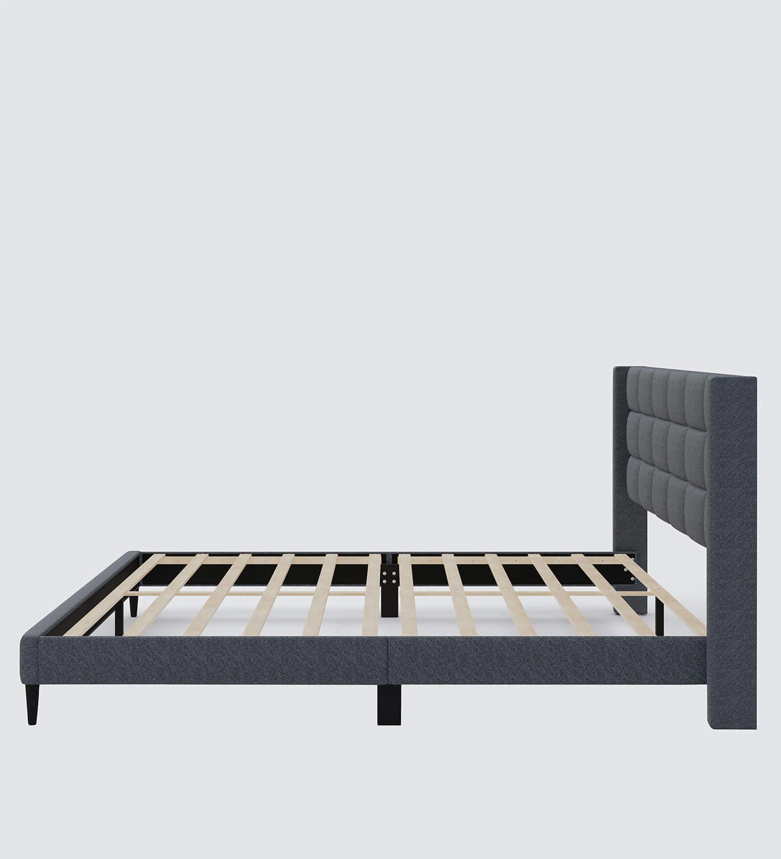 Elevate your bedroom with this sophisticated Queen Size Bed that perfectly blends modern design with everyday comfort. The bed features a stunning charcoal grey fabric upholstery that feels soft to the touch and adds a layer of warmth to your space.