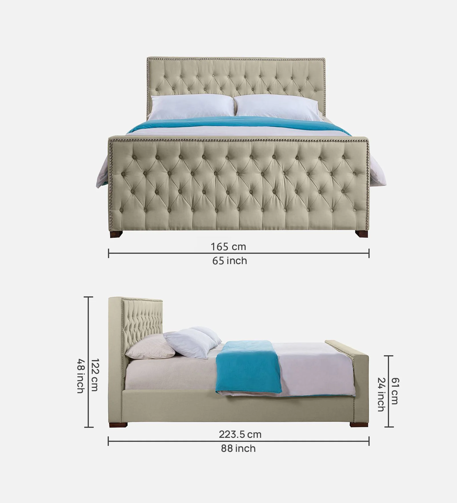 Premium Upholstered King Size Bed with Chesterfield Design