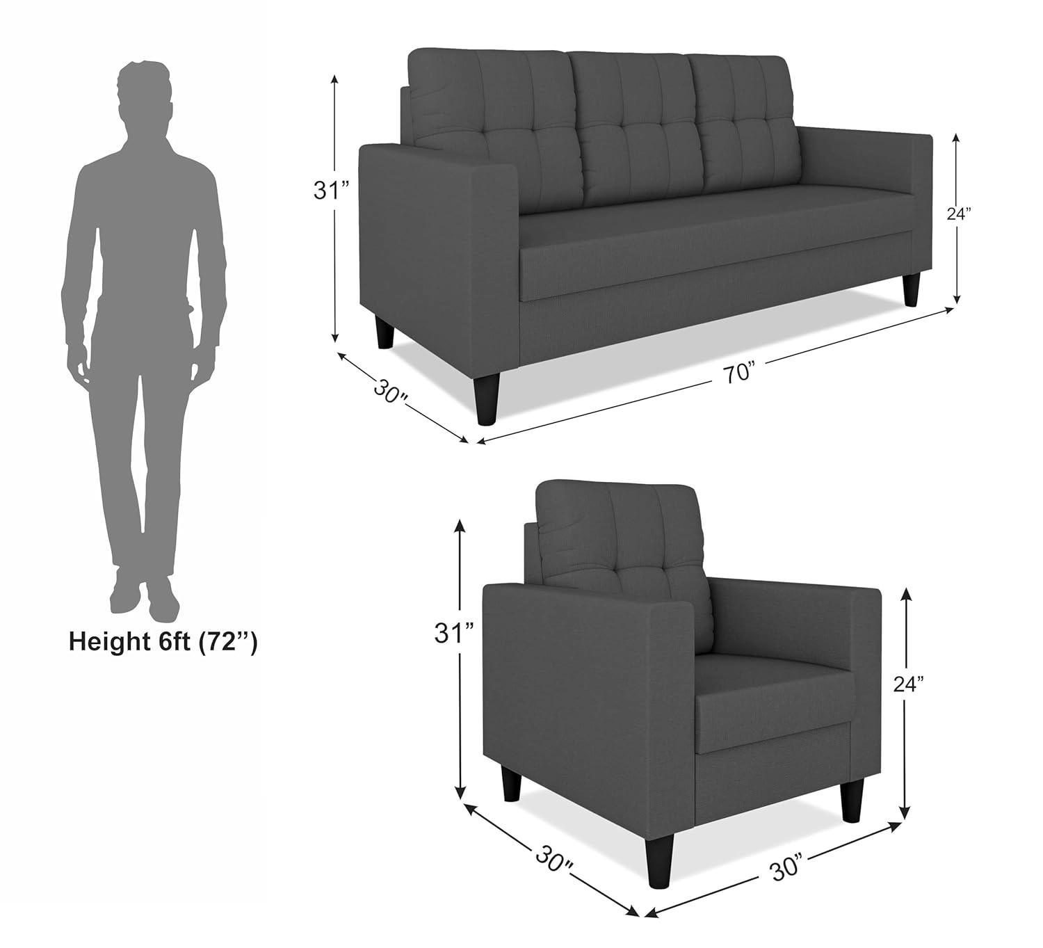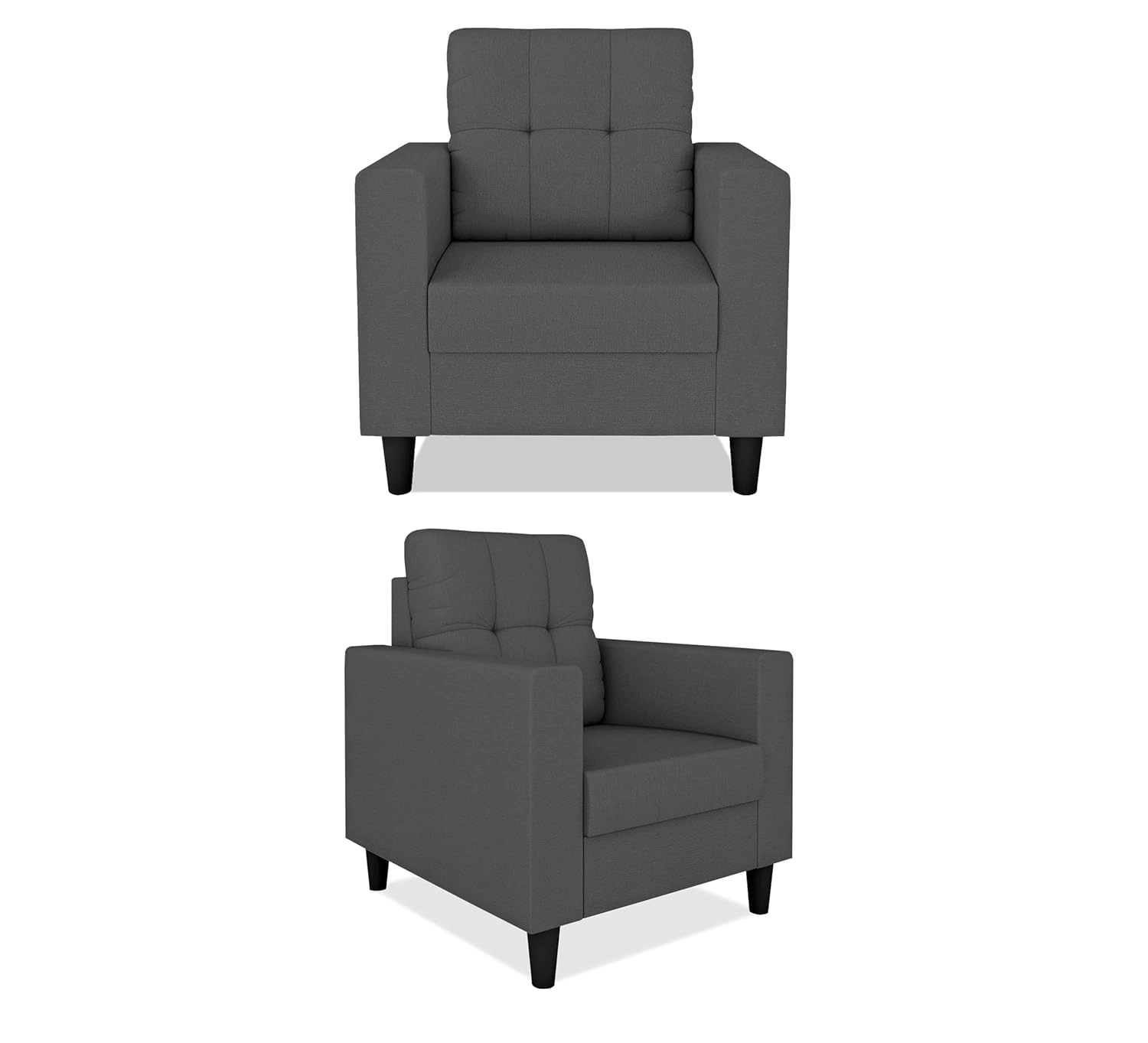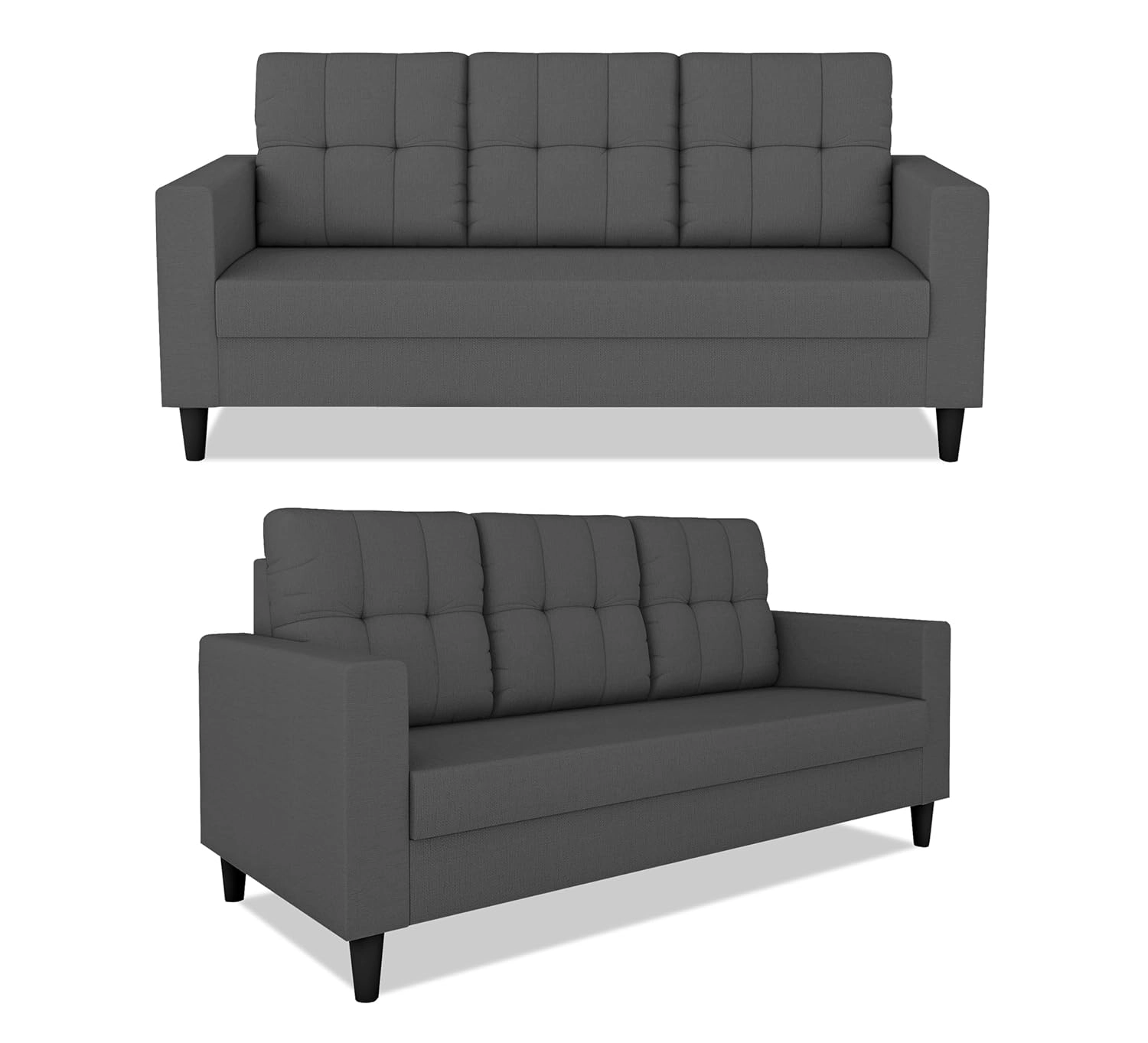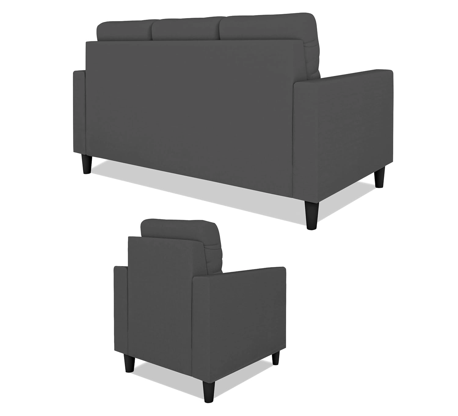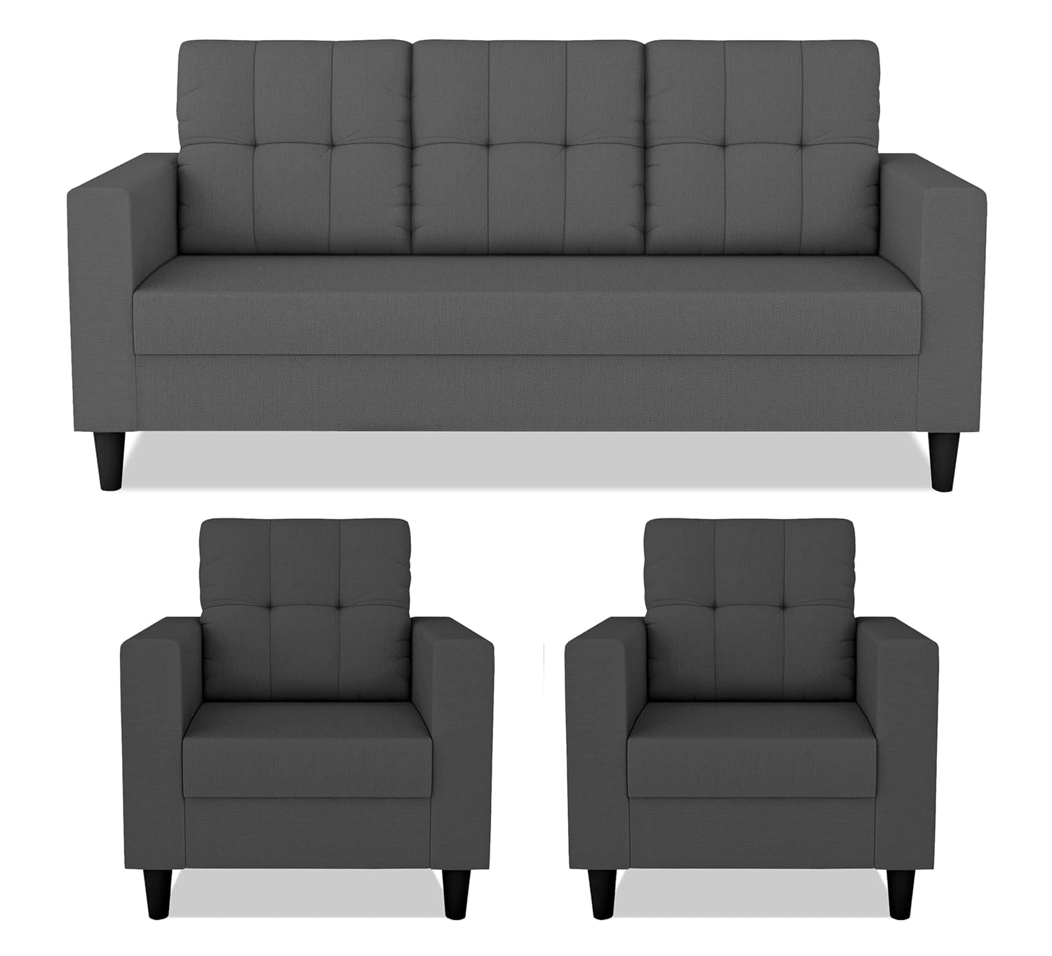 Sleek 5-Seater (3+1+1) Charcoal Grey Sofa Set – Premium Tufted Back & Modern Square Arms