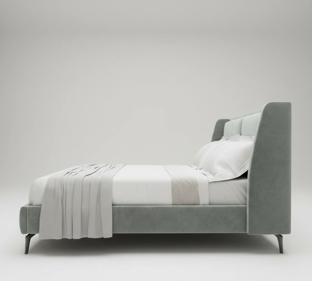 This stylish bed frame offers a modern aesthetic, featuring sleek lines and a refined design that blends well with any bedroom decor. With its minimalist look, the soft grey fabric and clean silhouette bring a touch of tranquility, making it perfect for restful sleep. The simple yet sophisticated headboard provides both comfort and style, creating a serene atmosphere.