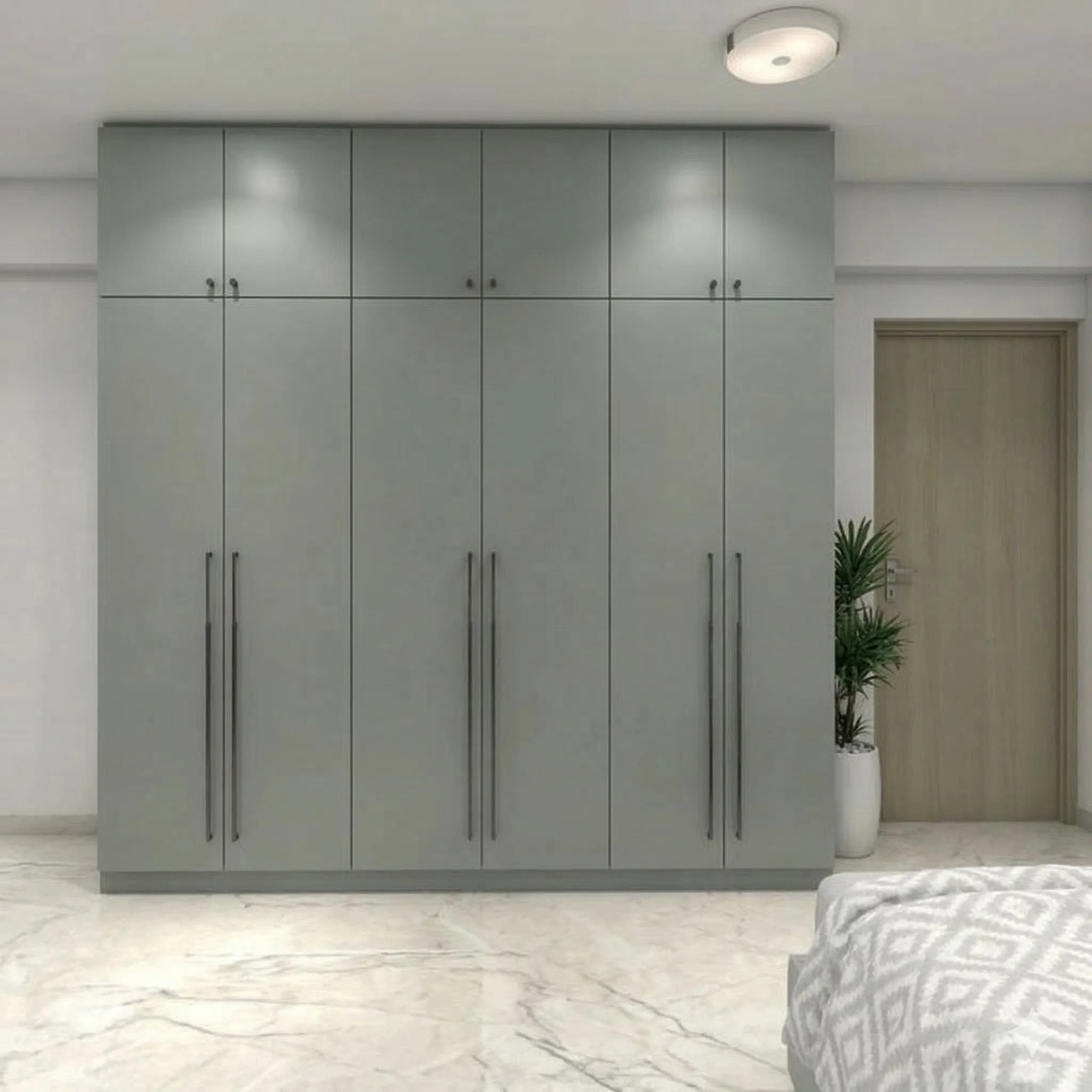 The main units offer generous space for your daily wardrobe, while the upper cabinets ensure a clutter-free lifestyle by stowing away seasonal essentials. The architectural slim-line handles provide a sturdy, ergonomic grip, adding a touch of modern industrial elegance that anchors the entire room.