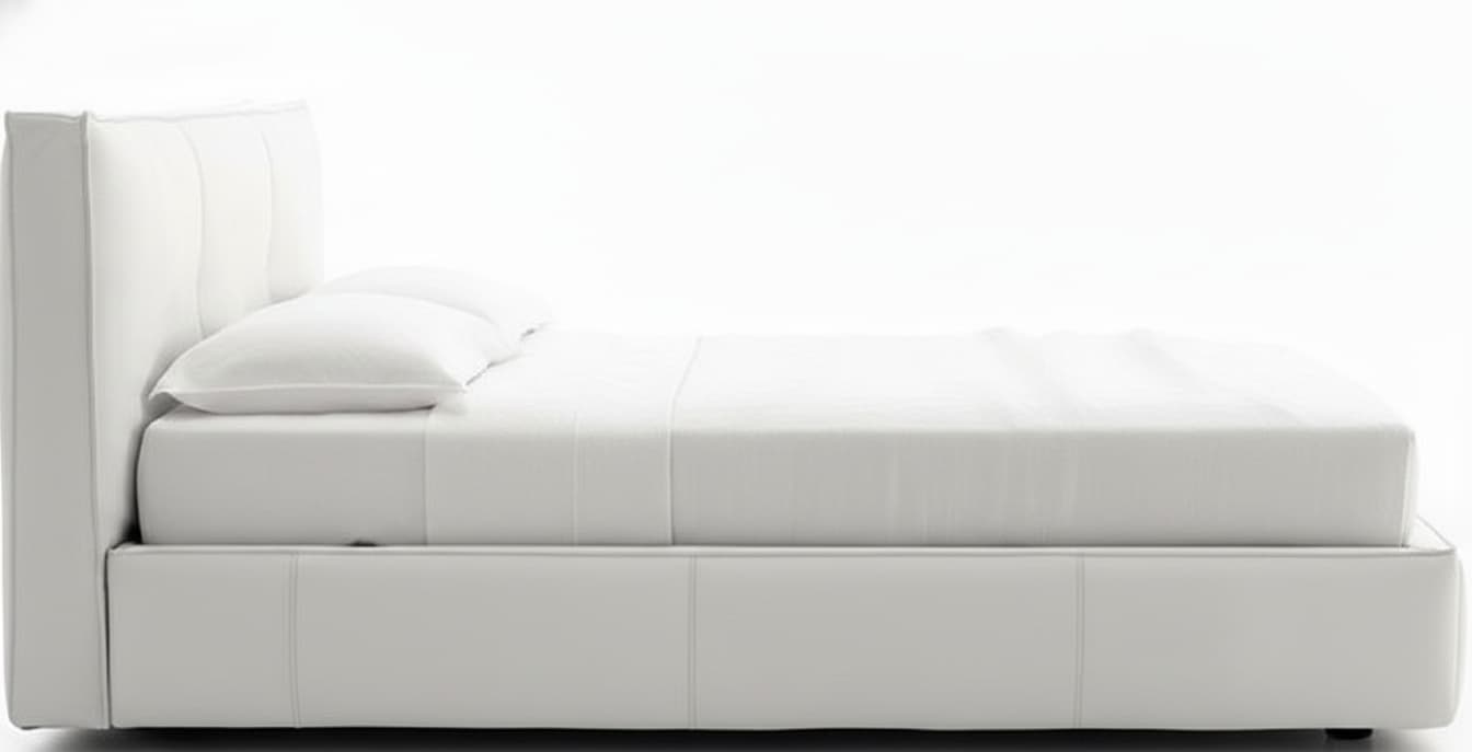 The entire frame is fully upholstered in a crisp, white fabric, making the room feel bright, spacious, and incredibly inviting. If you love a bedroom that feels like a calm retreat, this design is a perfect match.