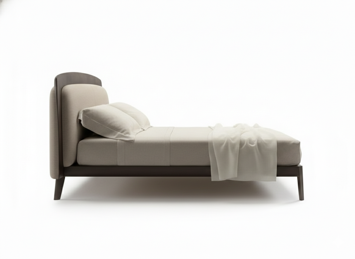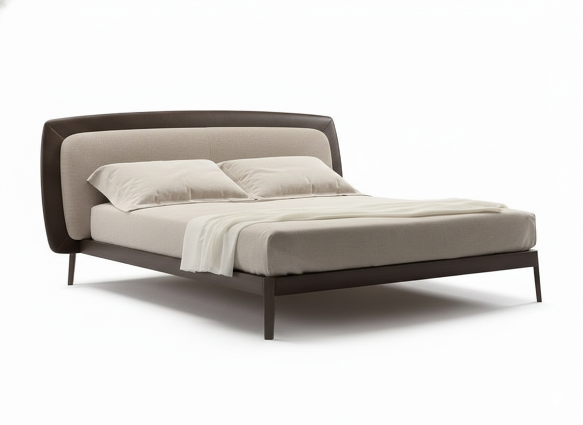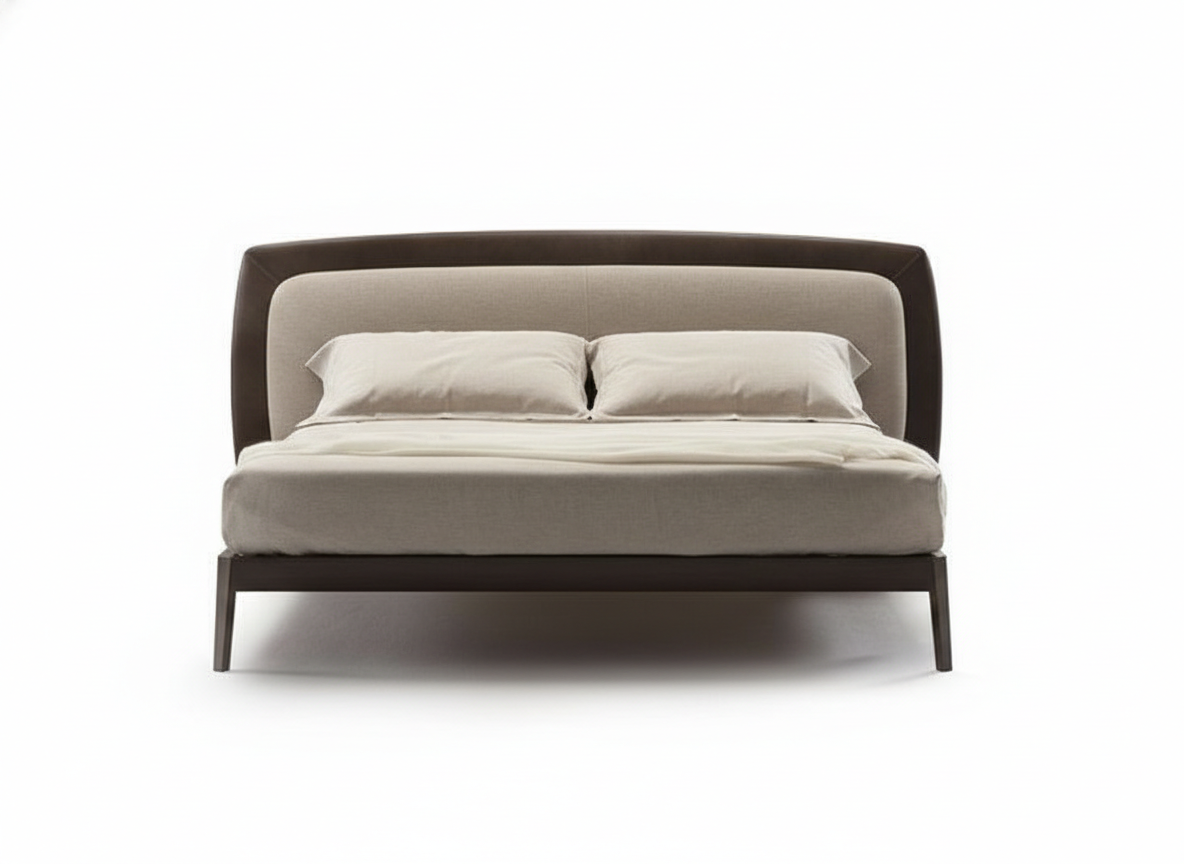 This bed is the perfect mix of modern style and cozy comfort, designed to be the heart of your bedroom. It features a unique “double-layered” headboard with a rich, dark outer frame that hugs a soft, padded inner cushion.