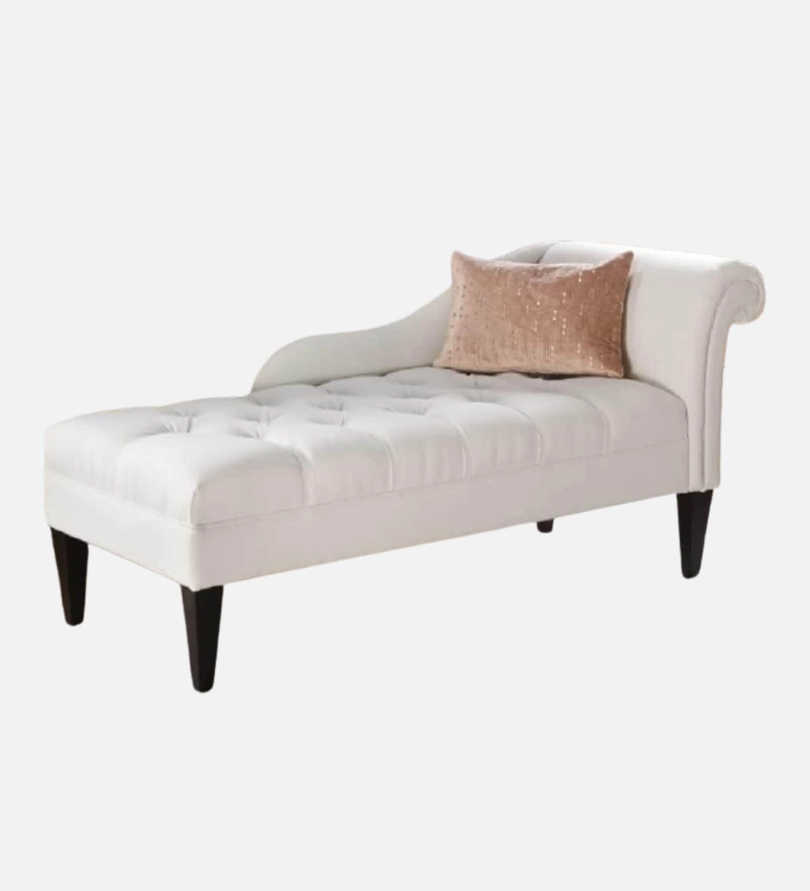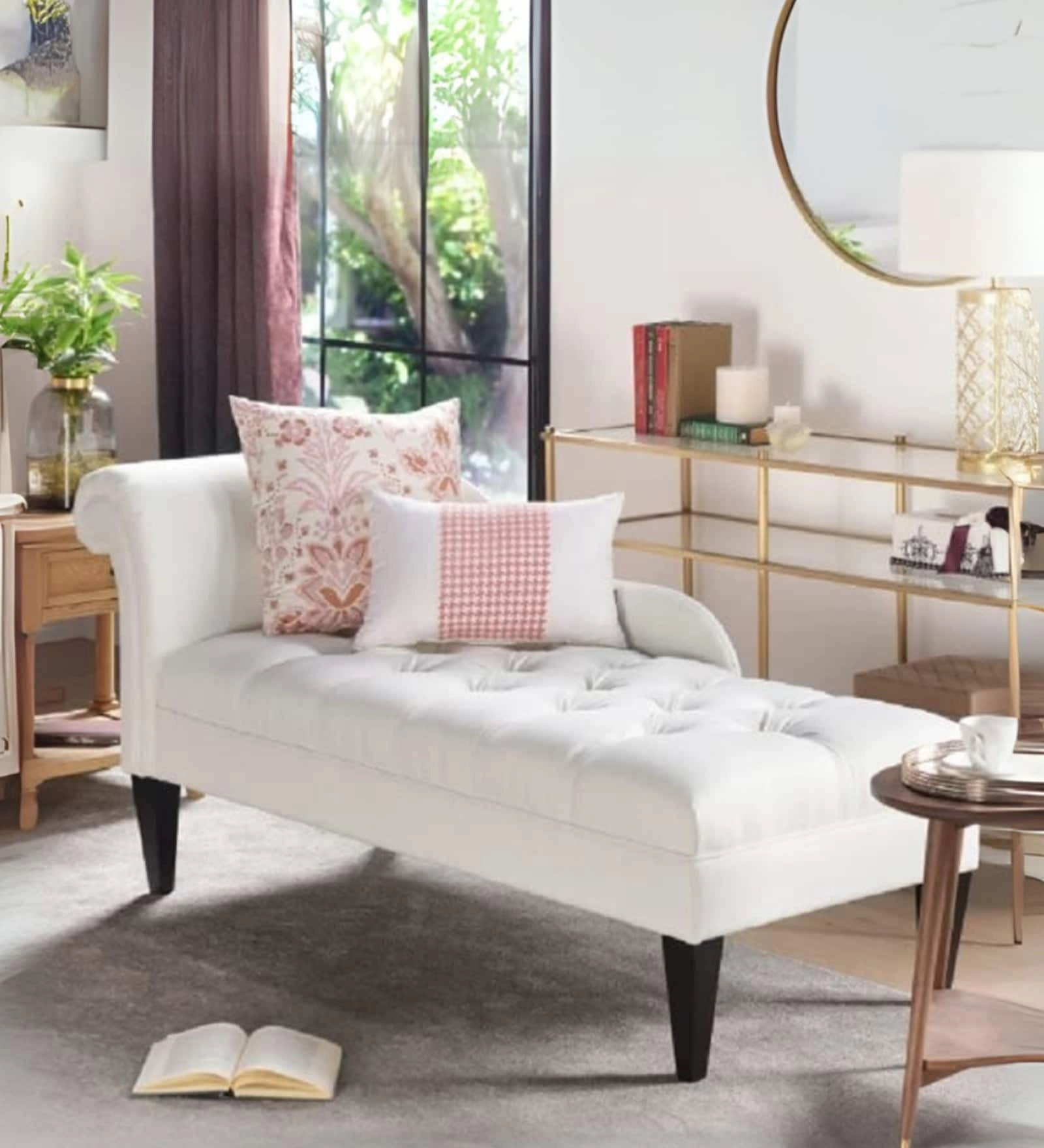 Tufted White Velvet Chaise Lounger Sofa – Elegant Indoor Daybed with Rolled Backrest