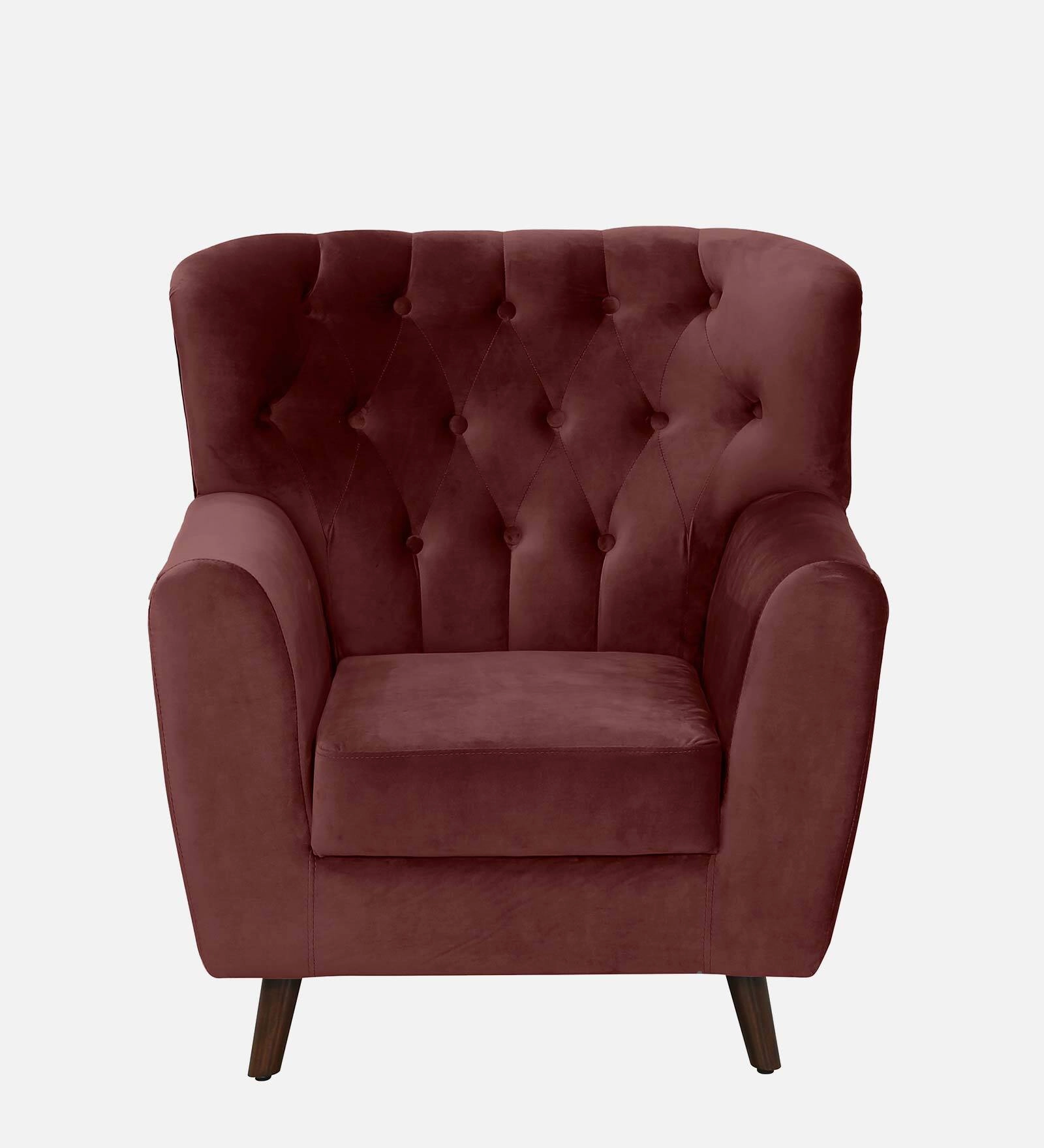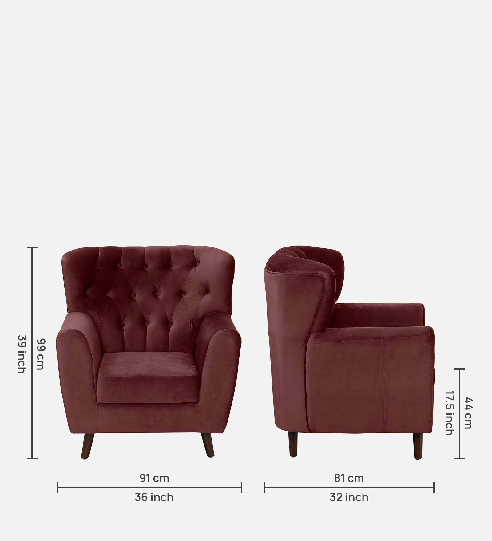 Add a touch of majestic charm to your home with this stunning deep wine-colored wingback chair. Whether you are setting up a cozy reading corner or looking for that perfect statement piece for your living room, this chair brings an instant “maharaja” vibe with its rich velvet finish and classic button-tufting. The high backrest and plush armrests are designed for those long, comfortable weekend chats over garam chai.