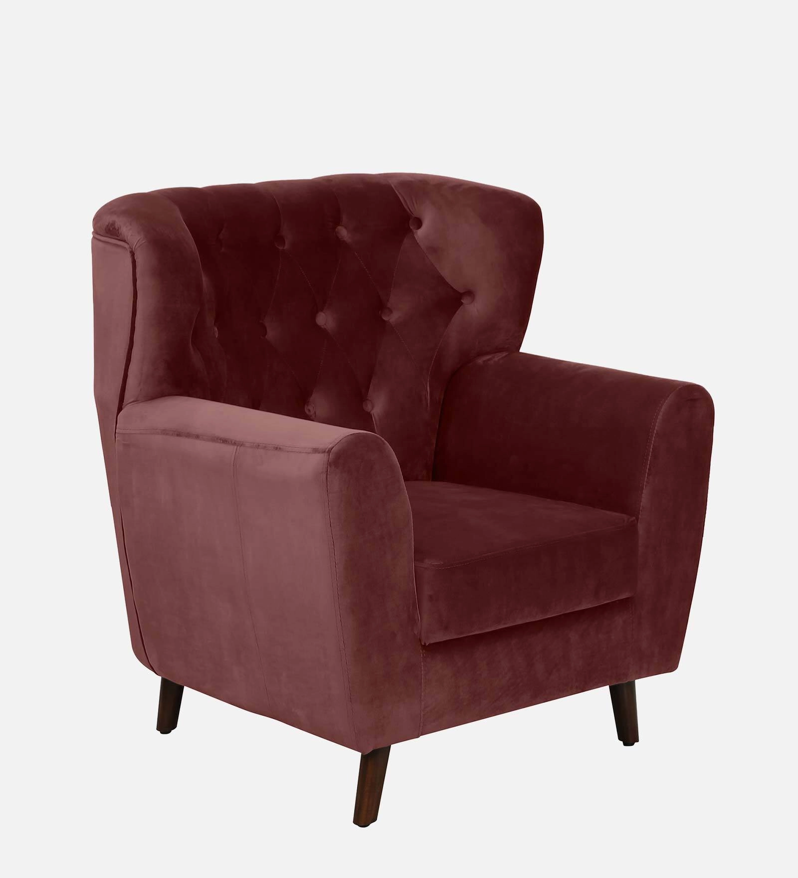 Built with a sturdy frame and elegant tapered wooden legs, this armchair is as durable as it is beautiful. Its deep, wine-red upholstery is perfect for Indian homes, hiding minor dust while adding a warm, sophisticated glow to your interiors. The wingback silhouette offers great head and neck support, making it the best seat in the house for relaxing after a busy day