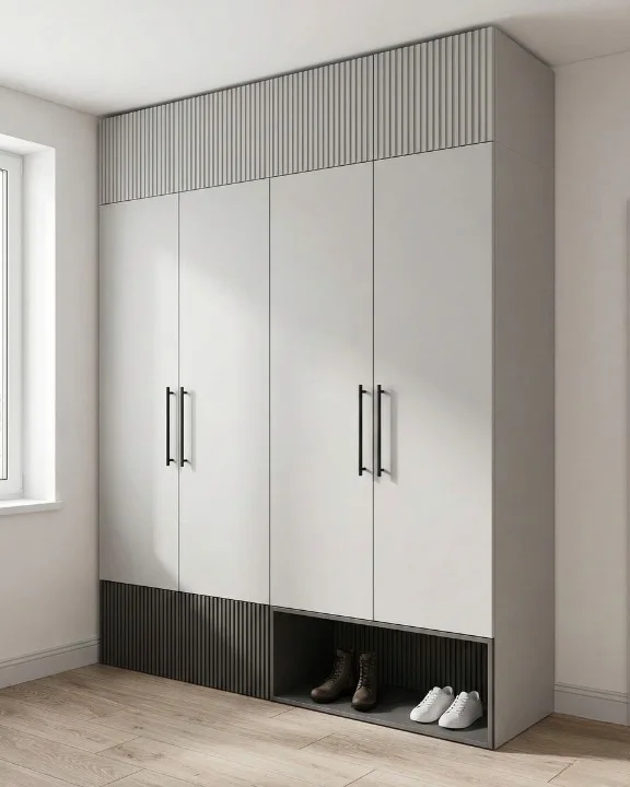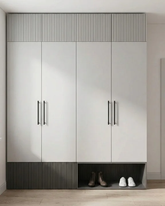 The premium anti-fingerprint matte finish is paired with durable fluted charcoal accents for long-lasting style. Featuring soft-close hinges and a reinforced plinth, it’s a masterclass in organized luxury for modern Indian apartments.